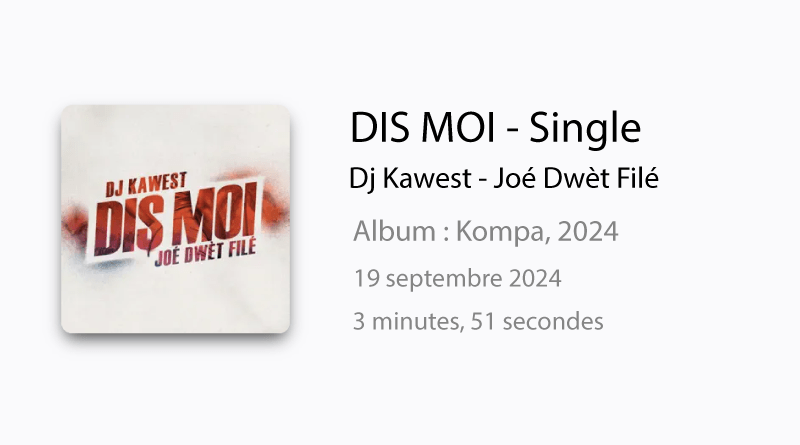 Découvrez 'Dis moi' de DJ Kawest feat Joé Dwèt Filé, un nouveau morceau kompa 2024 alliant rythmes envoûtants et paroles captivantes. À écouter sans modération !